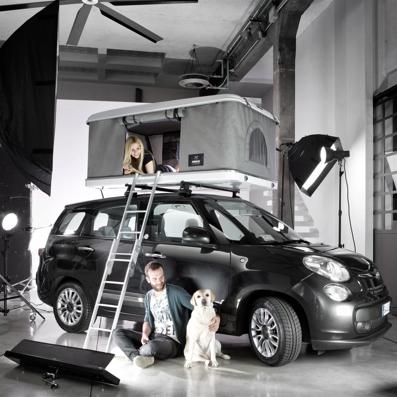 Das AirPass Medium Dachzelt bietet Dir auf Deinem Roadtrip einen wunderbaren Schlafplatz. Es schafft einiges an Raum für zwei Personen. Bei geschlossener Dachschale beträgt die Höhe des Dachzeltes gerade einmal 25 cm und in geöffnetem Zustand 98 cm. Durch die hochwertige Verarbeitung und das leichte, elegante Design eignet es sich sowohl für Kleinwagen als auch für SUV, Liefer- und Geländewagen. Das Aussenmaterial besteht aus Polyester mit Acrylbeschichtung, welches sehr wärmeisolierend und, im Notfall, leicht zu reparieren ist. Ausserdem bildet es keine unschönen Knitterfalten. Das atmungsaktive Material und der kondensabweisende Innenhimmel sorgen für ein überragendes Raumklima. Das Öffnen des AirPass Medium Dachzeltes erfolgt durch einen automatischen Mechanismus – hierzu musst Du einfach die vier Verschlüsse öffnen und es entfaltet sich mit Hilfe der eingebauten Gasdruckfedern innerhalb weniger Sekunden. In den integrierten, abnehmbaren Taschen finden Deine liebsten Gegenstände ihren Platz. Zur Ausstattung gehört ausserdem die Befestigung am Dachträger, zwei Türen sowie zwei Fenster mit integrierten Moskitonetzen und einer teleskopierbaren (ca. 120 – 210 cm) Aluleiter. Das AirPass Medium Dachzelt ist ideal für ein Abenteuer oder ein ruhiges Wochenende mit Deinem Partner.
