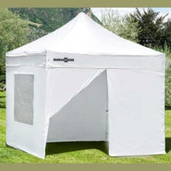 Das nützliche Brunner Seitenwand-Set für Zebó Enjoy 2.0 3X3 macht aus deinem Faltpavillon einen Verkaufsstand mit 3 geschlossenen Seiten oder auch ein komplett geschlossenes Partyzelt mit 2 Fensterwänden und einem Eingang. Die Wände werden einfach mit Klettverschlusse von innen am Pavillon befestigt und mit einem Reißverschluss miteinander verbunden.