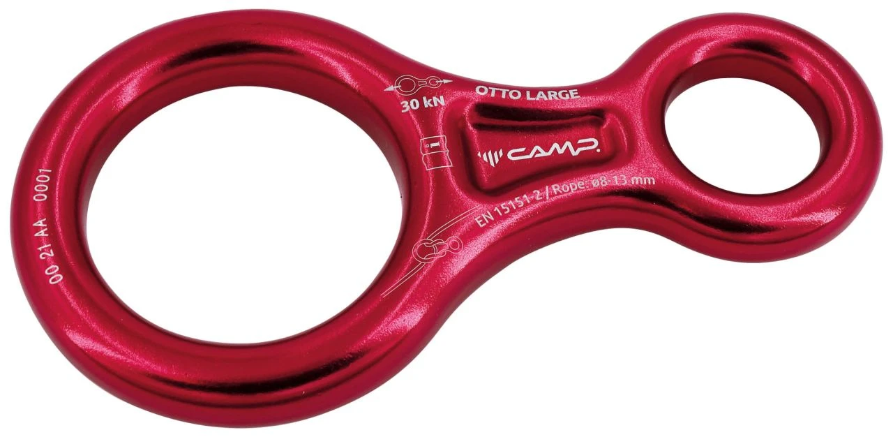 Er verfügt über ein größeres Loch um sich mit Einzelseilen abzusichern. Deshalb garantiert der Large Figure 8 von CAMP Abstiege am Doppelstrang, die noch weicher und regulärer sind.