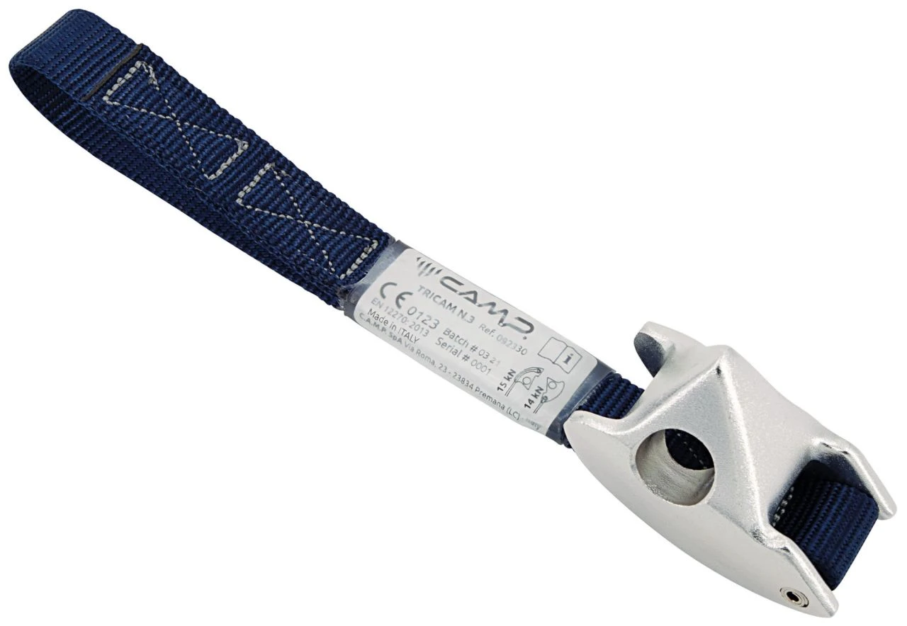 Diese außergewöhnlichen Schutzeinrichtungen können sowohl als Klemmnocken mit aktivem Schutz als auch als Klemmblock mit passivem Schutz eingesetzt werden und funktionieren oftmals dort, wo die Platzierung eines anderen Geräts nicht möglich ist. Die Tricam von CAMP sind ideal in den horizontalen Felsrissen, in den Löchern, in untiefen vertikalen Felsrissen und, im Unterschied zu den Mehrfach-Nockenvorrichtungen, auch in den vereisten Rissen.