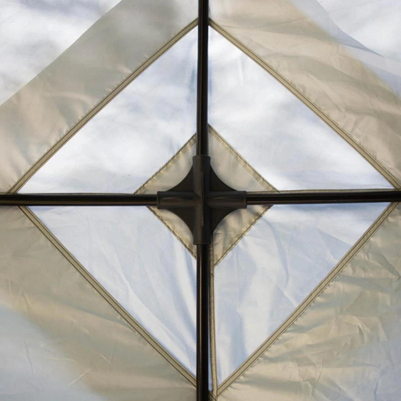 DerColeman FastPitch Shelter XL ist ein Pavillon, der sich in sehr kurzer Zeit aufbauen lässt. Der besondere Clou des FastPich Shelters sind die höhenverstellbaren Beine. Sie sind wie der Rest des Gestells aus Stahl und können im Handumdrehen abgesenkt oder hochgezogen werden. Mit einem einfachen „Klick“ rasten die Beine auf einer der vormontierten Höhen ein. Mit einer Aufbaufläche von 4,5 x 4,5 m ist der Coleman FastPitch Shelter XL ein kompakter Pavillon, der jedoch genügend Gästen auf deiner Gartenparty oder auf dem Campingplatz einen trockenen, schattigen Platz bietet. Die UV Guard Beschichtung sorgt für einen UV50+ Sonnenschutz. Aber auch vor Regen sind du und deine Gäste Dank der 1.000 mm Wassersäule geschützt. Der Coleman FastPitch Shelter XL ist ein freistehender Pavillon. Es empfiehlt sich jedoch, den Pavillon immer abzuspannen.