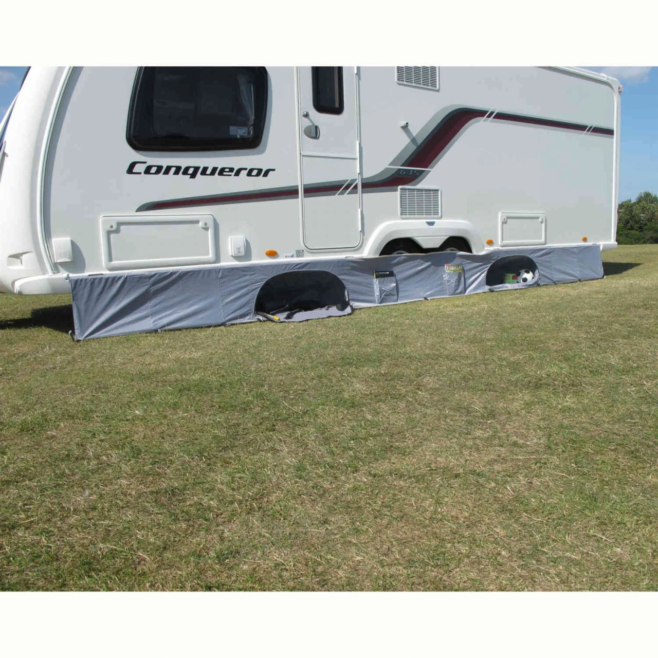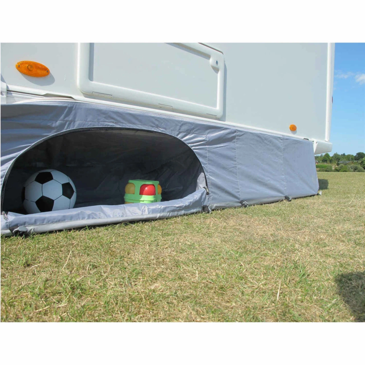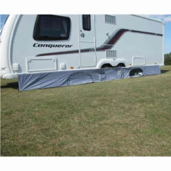 Der praktische Dometic Pro Organiser Skirt schafft eine Menge zusätzlichen Platz zur Unterbringung von Gegenständen, ohne dem Vorzelt Raum zu nehmen. Er nutzt den Platz unter dem Wohnwagen mit zwei großen Staufächern und zwei kleineren Taschen optimal aus. Der Pro Organiser Skirt hat eine Länge von 4-6 Metern.