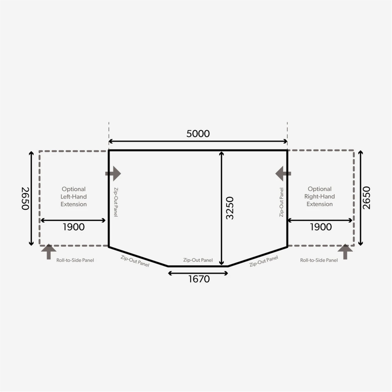 Das Dometic Ace AIR Pro 500 S Wohnwagenvorzelt überzeugt mit einem integrierten Vordach und einer Tiefe von 3,25m. Durch die Tiefe und Länge lässt sich problemlos ein Tisch, sowie Stühle aufstellen. So kannst du mit deiner Familie und deinen Freunden entspannte Abende verbringen oder dich im Schatten vor der Sonne schützen. Die Frontwände sind herausnehmbar, sodass Du das Gefühl hast, wie auf einer überdachten Terrasse zu sitzen. Durch raumhohe Erweiterungen zum Anzippen per Reißverschluss an einer oder an beiden Seiten, kannst du dein Vorzelt zu einem noch größeren Wohnraum erweitern oder Stauraum generieren. Solltest Du auf unebenen Boden stehen, kannst du das Dometic Ace AIR Pro 500 S Wohnwagenvorzelt mittels eines Reißverschlusses, der oberhalb der Seitentür vernäht ist ausgleichen. Die großen Fenster, welche mit Fliegengittereinsätzen ausgestattet wurden können bei Bedarf mit Gardinen verschlossen werden und gewährleisten somit mehr Privatsphäre.