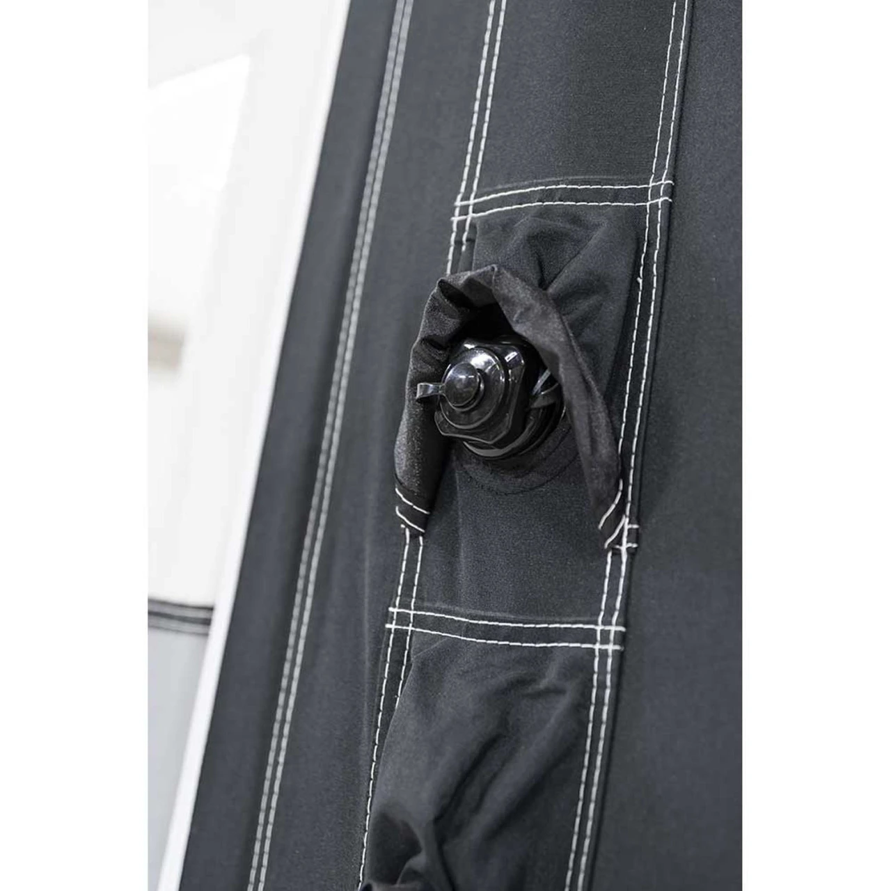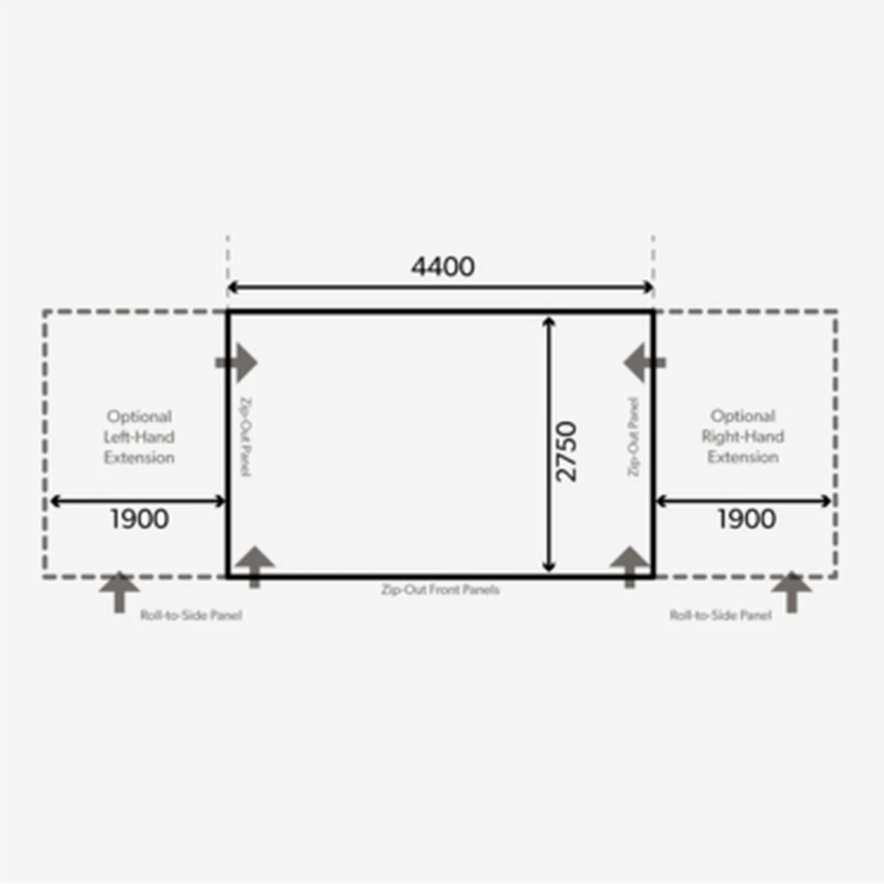 Bei dem Dometic Club AIR Pro 440 S Wohnmobilvorzelt trifft modernste Vorzelttechnologie auf klassische Optik. Durch die gerade Front kannst du die komplette Vorzelttiefe von 2,75 m ausnutzen und den Raum wohnlich gestalten, damit du dich in deinem Urlaub wie zuhause fühlst. Die herausnehmbaren Front- und Seitentüren sorgen dafür, dass du dich wie unter einer überdachten Terrasse sitzt. Eingebaute Moskitonetze in den Seitentüren schützen dich vor lästigen Insekten wenn du nachts dein Dometic Club AIR Pro 440 S Wohnmobilvorzelt lüften willst. Die Apex-Belüftung verbessert die Luftzirkulation im Zelt und es entsteht weniger Kondenswasser, was das Raumgefühl deutlich verbessert. Die Anschlusshöhe des Vorzeltes beträgt 235 – 265 cm. Dank des neuen variablem Anschlusshöhensystem kannst Du Wohnmobilvorzelt problemlos mittels eines Reißverschlusses, der oberhalb der Seitentür vernäht ist, auf unebenem Boden ausgleichen.