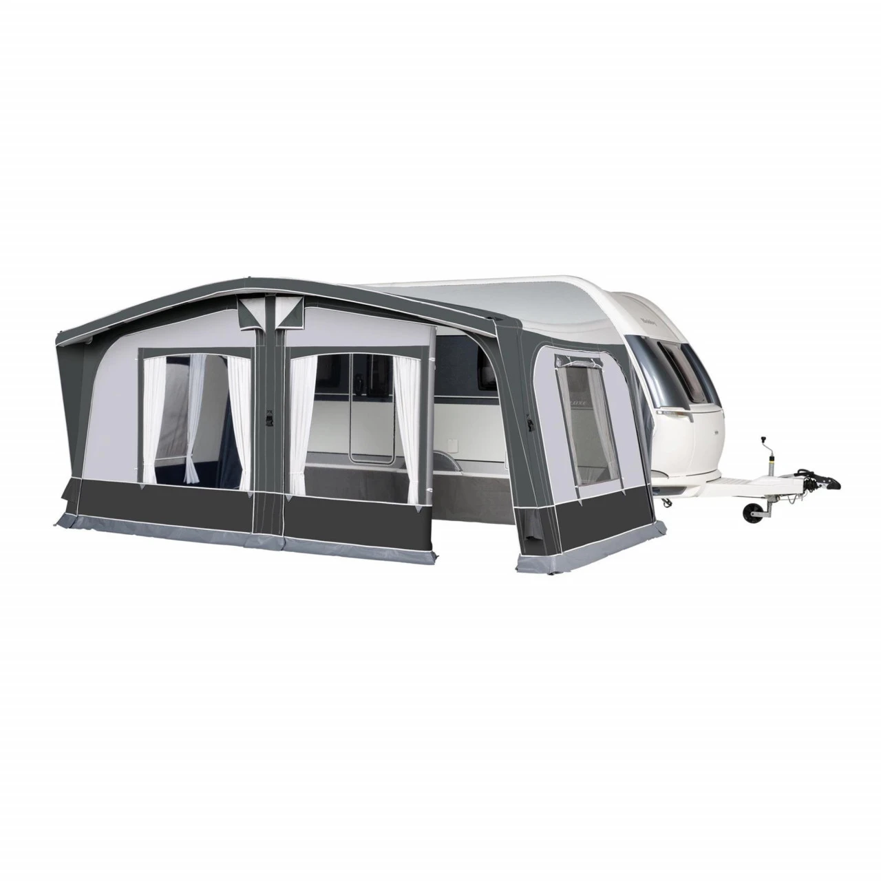 Das Doréma Octavia Air All Season Wohnwagenvorzelt ist die perfekte Wahl für anspruchsvolle Camper, die auf der Suche nach Komfort, Haltbarkeit und Flexibilität sind. Dieses Vorzelt in moderner Rundform ist ein echter Blickfang auf jedem Campingplatz. Es ist äußerst stabil und perfekt auf die verschiedenen Wohnwagenformen abgestimmt. Durch die abgerundete Dachform steht das Wohnwagenvorzelt selbst in windigen Küstengebieten Europas noch stabiler als herkömmliche Luftschlauchzelte. Die großen Panoramafenster sorgen für eine helle und einladende Atmosphäre im Zelt und ermöglichen Ihnen den Ausblick auf die Natur, während Sie drinnen sitzen und entspannen.