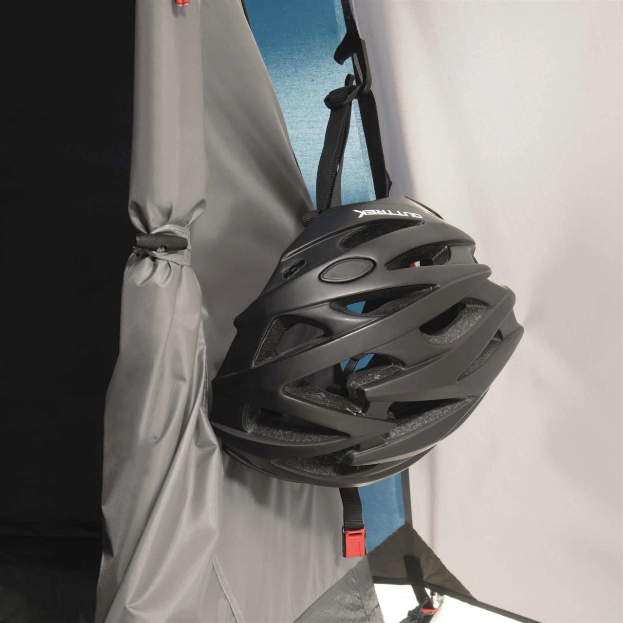 Die vielen kleinen Details, die von Easy Camp verarbeitet wurden, machen das Vega 300 Compact zu einem besonderen Zelt in Preis-Leistung. Beide Eingänge sind mit Moskitonetz versehen, so dass ihr nachts die Türen geöffnet lassen könnt und nur Luft ins Zelt kommt, aber keine Insekten. Im Vorraum sind 3 Haken montiert, so dass ihr eure Fahrradhelme aufhängen könnt. Wenn ihr eure Wäsche wascht oder verschwitzt von einer Tour kommt, könnt ihr die Wäsche auf der vormontierten Wäscheleine trocknen. Für Beleuchtung im Zelt sorgt eure Fahrrad- oder Stirnlampe. Die steckt ihr einfach in die mitgelieferte Lichttasche und hängt diese am Zelt auf.