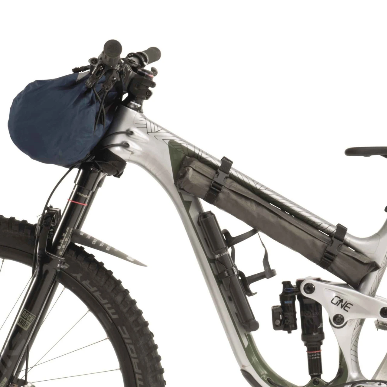 Damit das Vega 300 Compact nicht so viel Platz im Rucksack oder der Fahrradtasche wegnimmt, kann es direkt am Fahrrad befestigt werden. Das Gestänge wird in der Gestänge Tasche mit Schnallen direkt am Rahmen festgemacht. Achtet hierbei darauf, dass die Öffnung nach oben zeigt, damit keine Stangen herausfallen. Das Zelt an sich verstaust du in der wasserdichten Packtasche und befestigst diese mit Schnallen direkt am Lenker.