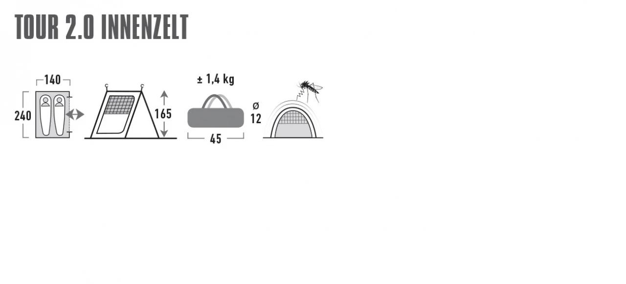 Mit dem High Peak Tour 2.0 Innenzelt schaffst du 2 zusätzliche Schlafplätze in deinem Tour 2.0 Busvorzelt. Das Tour 2.0 Innenzelt wird einfach an der Seite in deinem Buszelt eingehängt. Der Eingang des Innenzeltes ist mit einem Gazefenster ausgestattet. Der Boden besteht aus Polyethylen (PE) und hat eine Wassersäule von 10.000 mm. Darüber hinaus ist das Tour 2.0 Innenzeltbesonders atmungsaktiv.