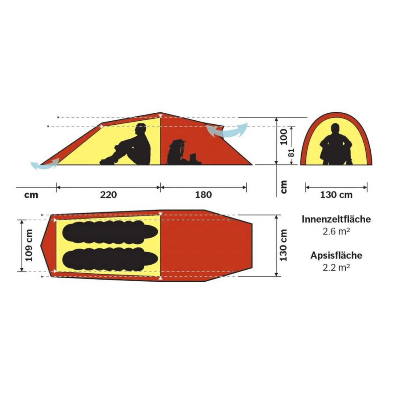 - Außenzelt reicht bis zum Boden
