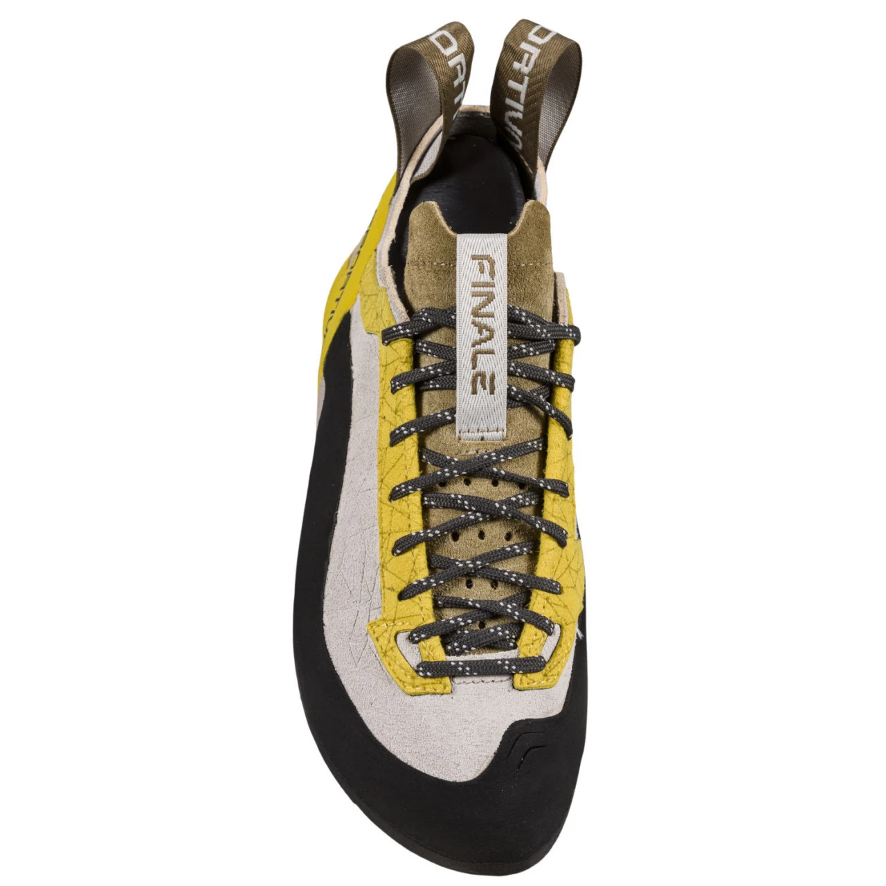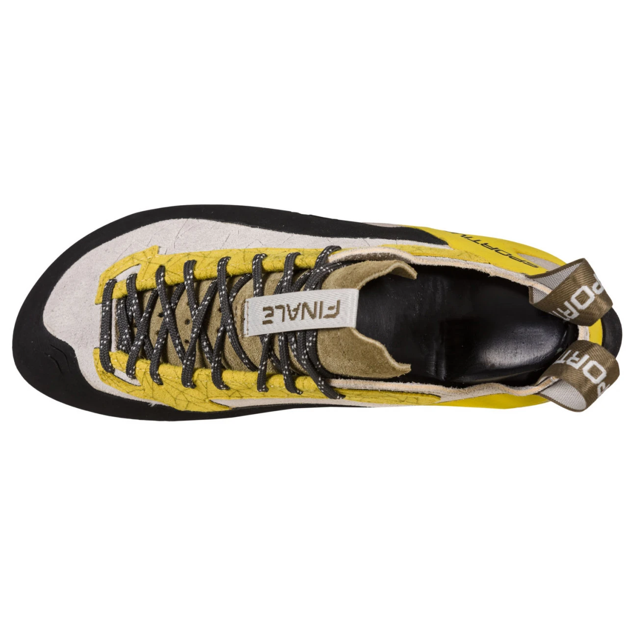 Der La Sportiva Finale Kletterschuh für Damen ist auch für lange Touren bestens geeignet. Der Kletterschuh hat eine präzise Passform und umhüllt den Fuß wie eine Socke. Der ist atmungsaktiv. Feuchtigkeit wird nach außen abgeleitet. Für Trittsicherheit sorgt die Vibram® XS Edge 5 mm. Das Obermaterial ist aus Veloursleder.