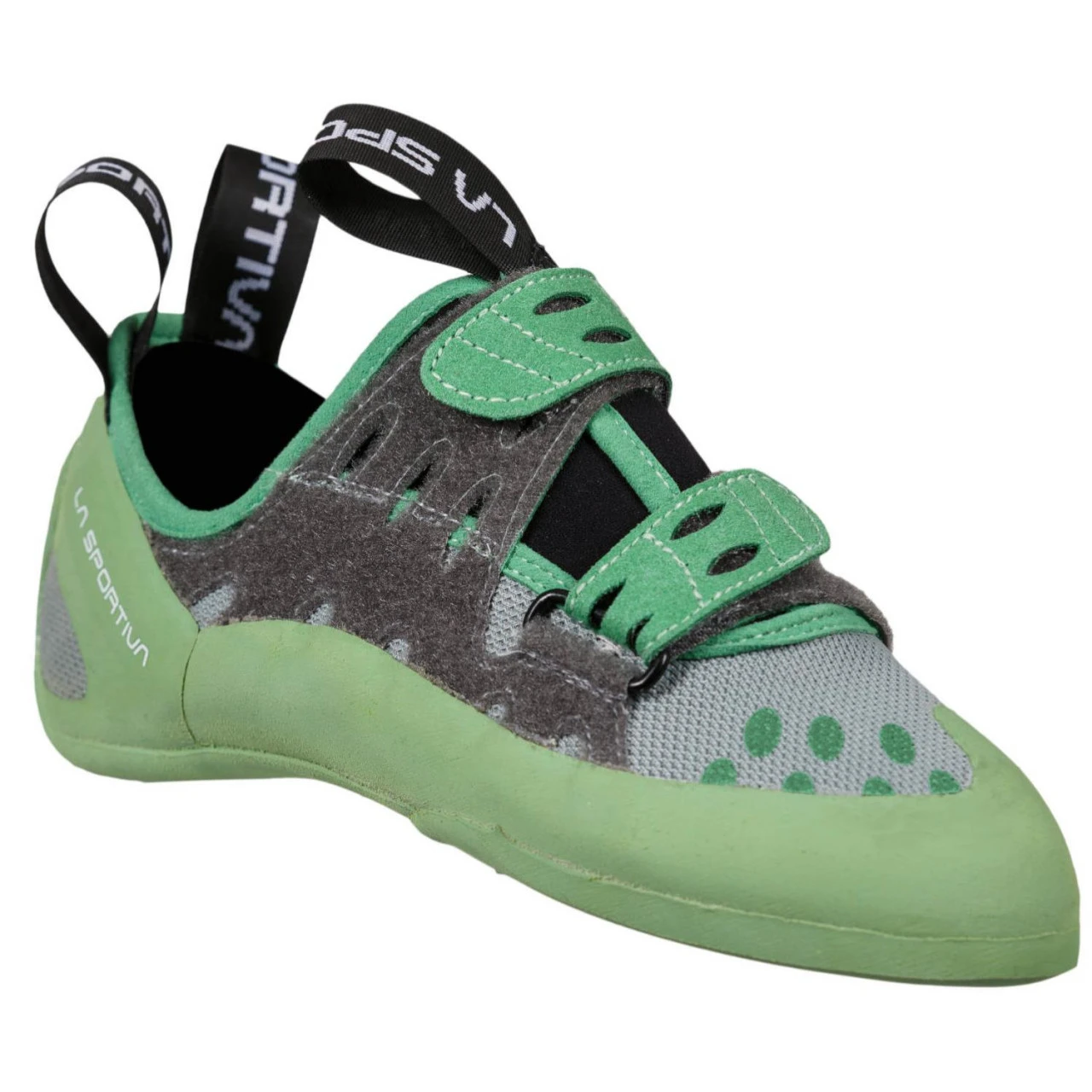 Die Damen Kletterschuhe La Sportiva Geckogym Vegan Women sind ideal für Neueinsteiger und die Kletterhalle. Geschnürt werden die Schuhe mit überkreuztem Klettverschluss. Die neutrale Passform der Geckogym Vegan Women eignet sich für alle Fußtypen. Keine der Materialien sind tierischen Ursprungs.