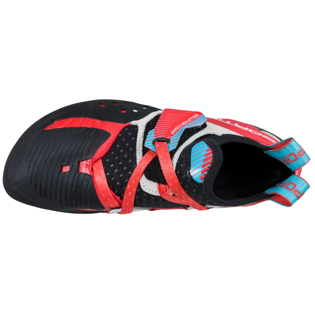 Der La Sportiva Solution Comp Women Kletterschuh für Frauen ist besonders gut für die Halle geeignet. Die Ferse mit schmalerem Profil ermöglicht höhere Präzision beim Heelhook auf kleinsten Griffen. Eine zusätzliche Gummierung auf der Spitze unterstützt Toehooks. Zu den Ausstattungsmerkmalen des La Sportiva Solution Comp Kletterschuhs gehören das Schnellschlürsystem mit patentierem Lock-Harness-System für maximale Umhüllung des Fußes.