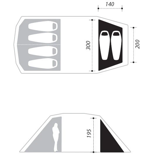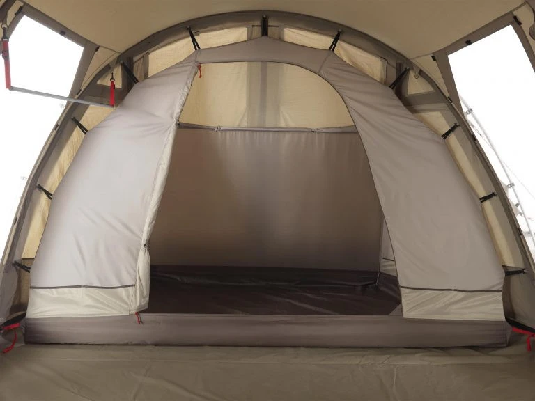 Bei der Nomad Double bedroom Dogon 4 (+2) Schlafkabine handelt es sich um eine Erweiterung für das Dogon 4-Tunnelzelt in ein 6 Personen Zelt. Mit dieser Schlafkabinen-Erweiterung können zwei Personen zusätzlich im Zelt schlafen. Die zusätzliche Schlafkabine kann ganz einfach an das Gestänge Deines Hauptzeltes befestigt werden. In die Schlafkabine gelangst du durch eine mit einem Moskitonetz ausgestatteten Tür. Ein zusätzlich abschließbarer Lüfter befindet sich im Innenzelt der Schlafkabine. Die Double bedroom Dogon 4 (+2) besteht aus einem leichten und atmungsaktiven Material, wie das Zelt.