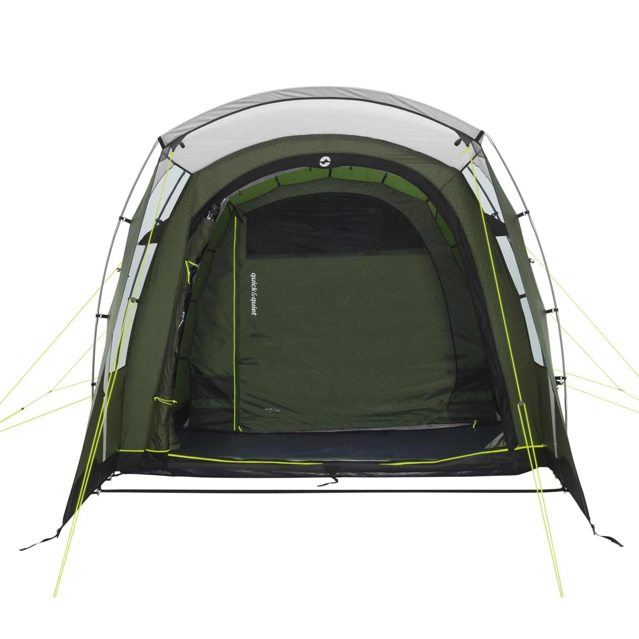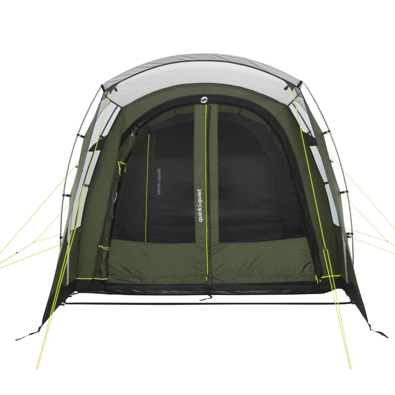 Das Outwell Ashwood 3 Familienzelt wurde speziell für Paare entwickelt, die gern Kurzurlaube mit dem Zelt unternehmen. Mit dem ummantelten Duratec-Fiberglasgestänge, der vollen Stehhöhe, der optimalen, vielseitigen Belüftung sowie den 2 patentierten Quick & Quiet Magnettüren steht einem komfortablen Campingerlebnis nichts mehr im Weg. Hinter der Vorderwand mit Seitenfenster und großem Vordach gelangst du durch die neue, patentierte Quick & Quiet Mesh Tür mit Magnetverschluss in dein Zelt. Wenn du die Magnetfunktion nicht nutzen möchtest, kannst du die Front mit einem doppelten Reißverschluss komplett öffnen. Das eingearbeitete Moskitonetz ermöglicht eine Belüftung, ohne dass Insekten ins Zelt gelangen. Die abgedunkelte Premium Schlafkabine ist ebenfalls mit einer Quick & Quiet Tür versehen, so dass du die Kabine geräuschlos öffnen und verlassen kannst. Für eine optimale Belüftung der Schlafkabine des Ashwood 3 von Outwell sorgt das „Rear Ventilation System“. Eine spezielle, variable Belüftung an der Zeltrückseite. Die Netztaschen im Innenzelt dienen zur Aufbewahrung kleinerer Gegenstände, die du schnell zur Hand haben willst. Die großen getönten Fenster reduzieren das Blenden bei starker Sonneneinstrahlung. Um dir mehr Privatsphäre zu gewährleisten, kannst du die Fenster mit Vorhängen auch komplett schließen.