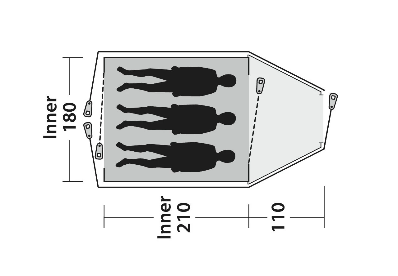 Das Outwell Cloud 3 Campingzelt ist aufgeteilt in einen Schlaf- und einen Lagerraum, beherbergt bis zu 3 Personen und überzeugt dabei mit seinem geringen Packmaß. Gepäck und Ausrüstung können im großen Lagerraum verstaut werden, der zur einfachen Reinigung mit einer herausnehmbaren Bodenwanne ausgerüstet ist. Der Boden des Innenzeltes ist zur Vermeidung von Nässe, Schmutz und Insekten fest mit den Zeltwänden vernäht. Der Schlafbereich wurde mit abgedunkeltem Material ausgestattet, sodass Deine Nächte länger und entspannter werden. Um Kondensationsnässe zu verhindern, befindet sich im hinteren Teil des Zeltes ein Belüftungssystem. Für mehr Ordnung in Deinem Zelt sorgen in die Netztaschen in den Seiten des Innenzeltes. Dort kannst Du kleine Gegenstände sicher und griffbereit aufbewahren. Die großen Fenster bieten trotz ihrer leichten Tönung, welche UV-Strahlen abhalten soll, einen hervorragenden Blick auf Deine Umgebung. Zusätzlich zum Fronteingang hat das Cloud 3 einen Hintereingang, der mehr Flexibilität beim Ein- und Austreten gewährt. In den Türen zum Schlafbereich wurden Moskitonetze integriert, sodass lästige Insekten kein Problem darstellen.