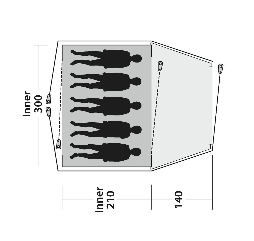 Das Outwell Cloud 5 Campingzelt eignet sich hervorragend für einen Ausflug mit bis zu 5 Personen. Das Zelt ist innerhalb weniger Minuten aufgebaut und bietet Dir den Platz, den Du für einen Wochenendtrip benötigst. Es ist aufgeteilt in einen Schlafbereich und einen Lager/Wohnraum. Dort können Gepäck und Ausrüstung verstaut werden, der zur einfachen Reinigung mit einer herausnehmbaren Bodenwanne ausgerüstet ist. Der Boden des Innenzeltes ist zum Schutz von Nässe, Schmutz und Insekten fest mit den Zeltwänden vernäht. Die Schlafkabine wurde mit abgedunkeltem Deckenmaterial ausgestattet, sodass Deine Nächte länger und entspannter werden. Um Kondensationsnässe zu verhindern, befindet sich im hinteren Teil des Zeltes ein Belüftungssystem. Die Fenster bieten trotz ihrer leichten Tönung, welche UV-Strahlen abhalten soll, einen hervorragenden Blick auf Deine Umgebung. Für mehr Ordnung in Deinem Zelt sorgen in die Netztaschen in den Seiten des Innenzeltes. Dort kannst Du kleine Gegenstände sicher und griffbereit aufbewahren. Zusätzlich zum Fronteingang hat das Cloud 5 einen Hintereingang, der mehr Flexibilität beim Ein- und Austreten gewährt sowie einen D-förmigen Zugang zum Innenzelt. In den Türen zum Schlafbereich wurden Moskitonetze integriert, sodass lästige Insekten kein Problem darstellen. Ein Kompressions-Tragesack reduziert das Packmaß.