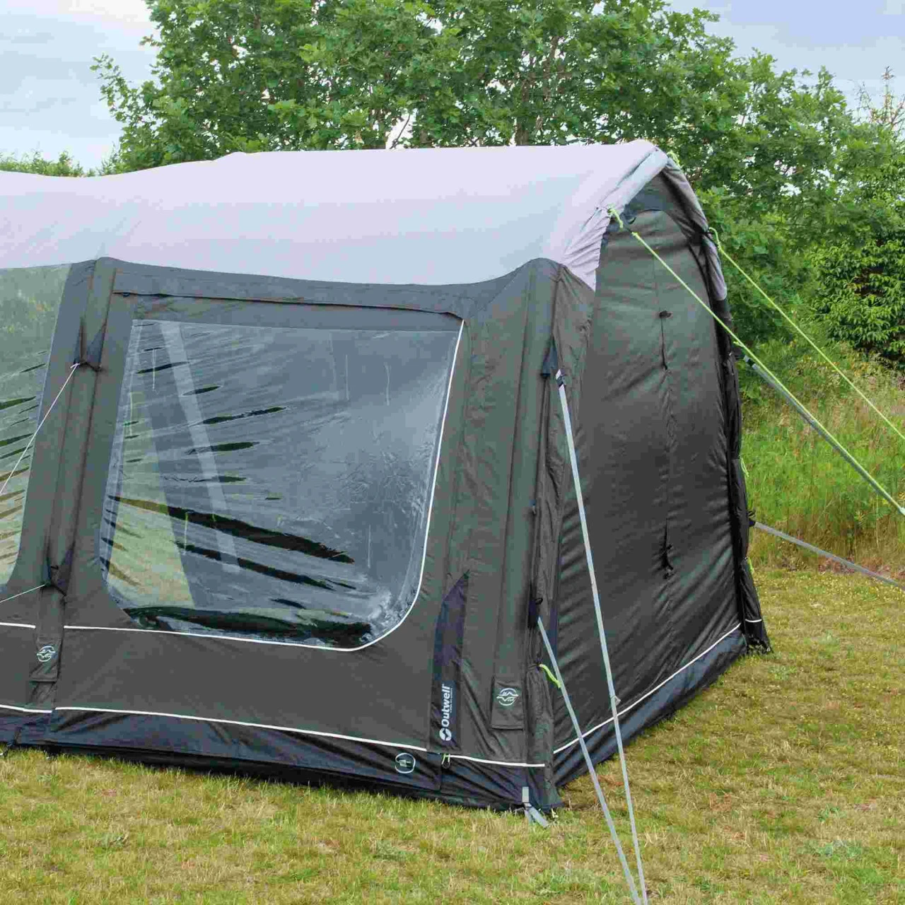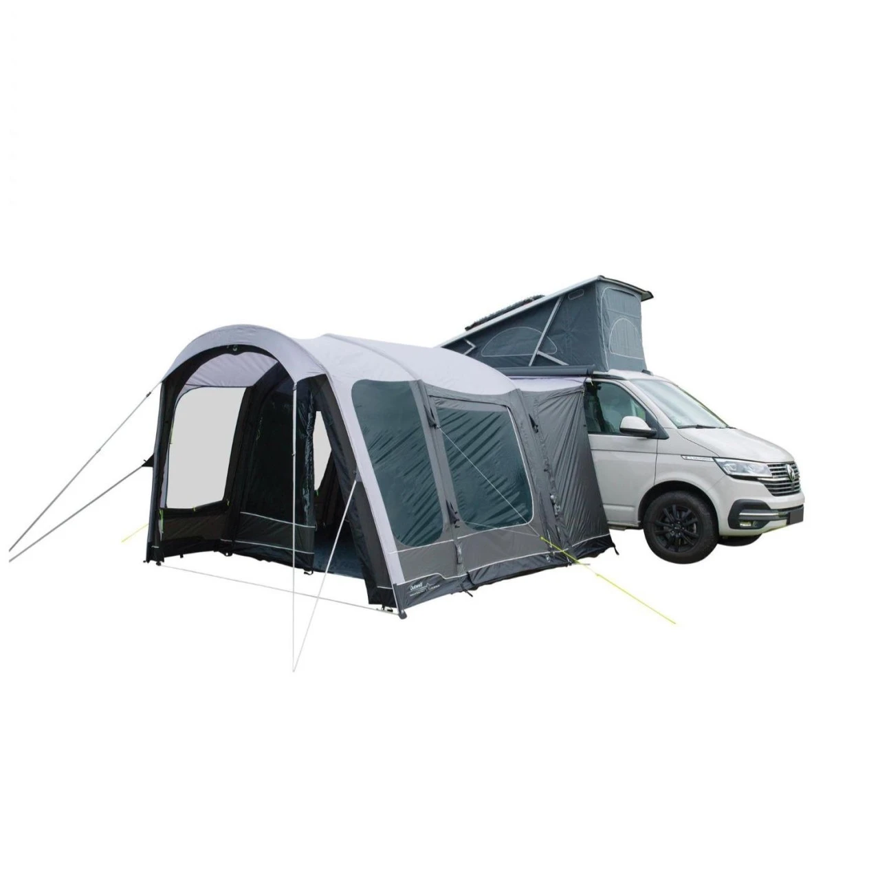 Das Outwell Maryville 260SA Flex ist ein absolut flexibel einsetzbares, schnell und einfach aufzubauendes Busvorzelt. Es kann auf beiden Seiten des Fahrzeugs befestigt werden. Die beiden Seiteneingänge mit den getönten Fenstern und die komplett wegrollbare Fronttür bieten einen äußerst komfortablen Wohnbereich bei schönem Wetter. Wenn es einmal regnen sollte, kannst du einfach die Fronttür nach vorn versetzen und schaffst dir dadurch einen größeren Wohnraum im Zelt. Sollten Freunde zu Besuch kommen, kannst du das Maryville 260SA Flex mit dem optional erhältlichen Innenzelt in einen zusätzlichen Schlafraum verwandeln. Du kannst dein Fahrzeug durch eine der beiden Schleusentüren betreten, ohne durch das Zelt laufen zu müssen. Das Zelt besteht aus einem äußerst robusten Rip-Stop Gewebe und ist mit seiner 6000 mm Wassersäule absolut wasserdicht. Damit Dein Zelt ein noch wohnlicher wird, verfügt das Zelt über das HookTrackSystem. Dieses System bietet Dir vielseitige Möglichkeiten, Gegenstände oder Lampen aufzuhängen.