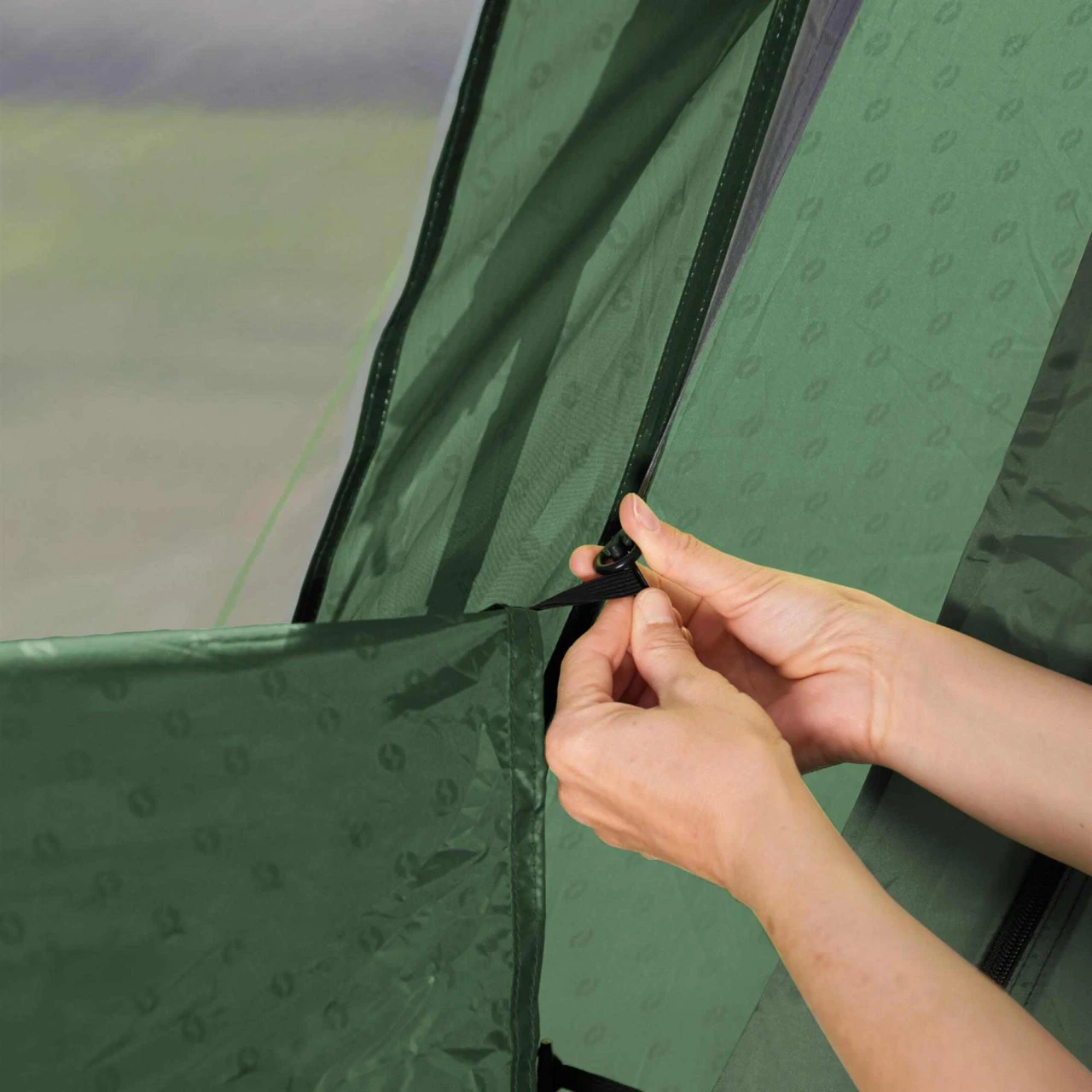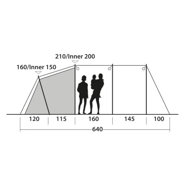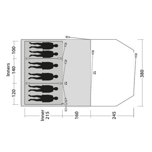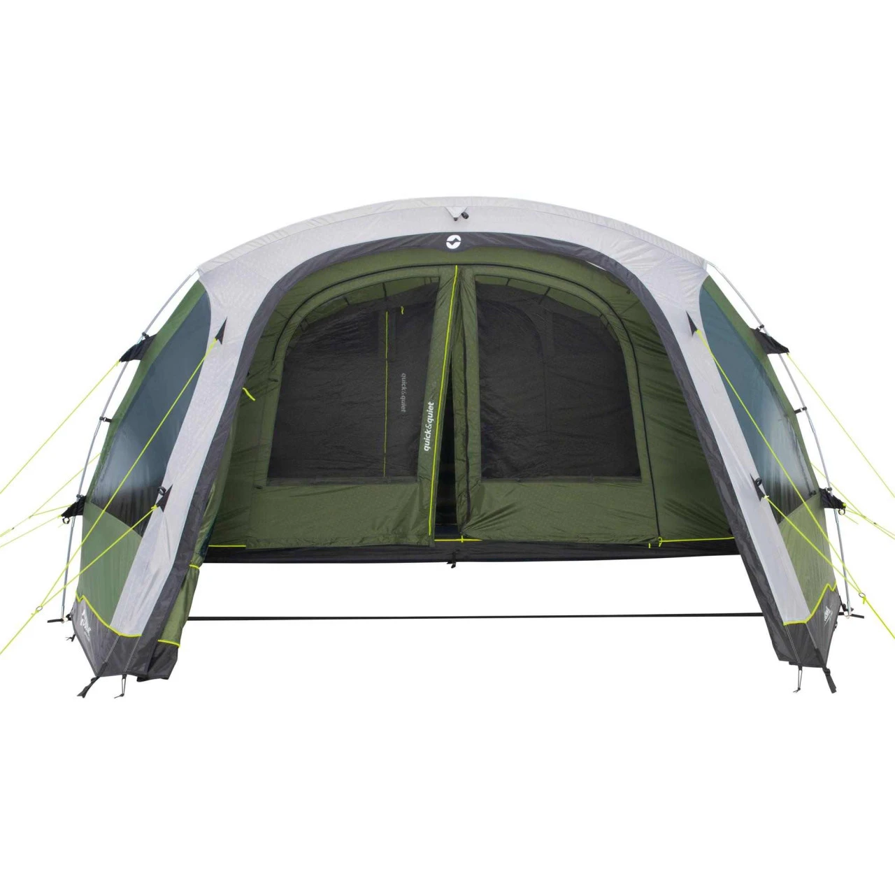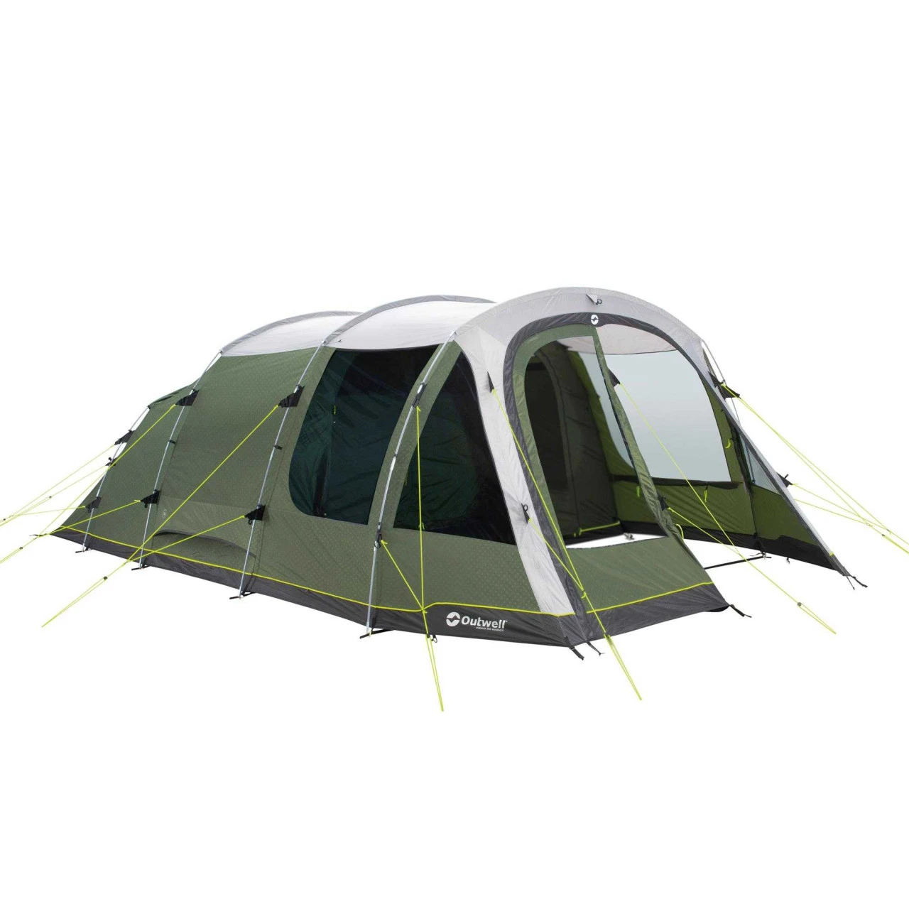 Das Outwell Norwood 6 Familienzelt ist ein sehr geräumiges 3-Zonen-Zelt für bis zu 6 Personen. Der sogenannte „Nassbereich“ ist ideal dafür geeignet, eine Campingküche aufzustellen. Bei schlechtem Wetter kann der Zugang verschlossen werden, so dass der Wohnbereich erweitert wird. Vom „Nassbereich“ gelangst du durch die patentierte Quick & Quiet Door mit Magnetverschluss. Damit bewegst du dich nahezu geräuschlos in deinem Zelt. Wenn du die Magnetfunktion nicht nutzen möchtest, kannst du die Tür mit dem doppelten Reißverschluss komplett verschließen oder auch ganz öffnen. Ein separater Seiteneingang bietet zusätzliche Flexibilität für die Nutzung deines Norwood 6 Zeltes. Die Premium Schlafkabine erreichst du auch über eine Quick & Quiet Door mit Magnetverschluss. Du kannst so die Schlafkabine betreten oder verlassen, ohne deine Mitcamper zu wecken. Zur idealen Belüftung dienen auch das „Low Ventilation“ im Wohnraum und das Rear-Ventilation-System in der Rückseite des Zeltes. Die Lüftung kann individuell eingestellt werden und bei Bedarf mit einem Reißverschluss auch komplett geschlossen.