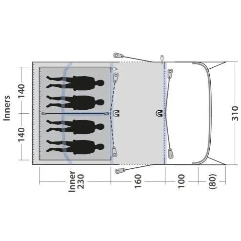 In diesem Set ist das Hayward Lake 4 ATC und das ONS Beleuchtungs-Set enthalten. Das großzügig geschnittene Outwell Hayward Lake 4ATC Familienzelt aus Baumwollmischgewebe bietet einen außergewöhnlichen Komfort für deinen Campingurlaub. Innerhalb weniger Minuten ist es durch die Luftkanäle ganz einfach aufgebaut. Das große Vorzelt mit Fenstern in den Seitenwänden, zurückrollbaren Paneelen und großem Vordach vergrößert den Wohnbereich und bietet gleichzeitig Schutz vor Regen. Eine absolute Neuheit ist das Outwell Nightlight System (ONS). Am Eingang und im Wohnbereich ist in den Halteschläuchen für das HookTrack System eine Beleuchtung integriert. Mit dem optional erhältlichen ONS Light Unit Set kannst du das Licht per Fernbedienung in 3 Lichtstärken steuern. So findest du garantiert den Weg zu deinem Zelt, wenn du nachts zurück zum Campingplatz kommst. Der große Fronteingang hat die patentierte Quick & Quiet Mesh Door bekommen. Durch den Magnetverschluss kannst du dein Zelt geräuschlos betreten. Wenn du diese Funktion nicht nutzen willst, kannst du mit Hilfe der doppelten Reißverschlüsse die Front komplett öffnen. Das Moskitonetz hält dabei lästige Insekten fern. Die Quick & Quiet Door kann aber auch wie ein herkömmlicher Zelteingang komplett verschlossen werden. Zwei separate Seiteneingänge mit Moskitonetzen sorgen für eine rundum Belüftung. Die Rear Ventilation hinter der Schlafkabine kann individuell eingestellt werden.