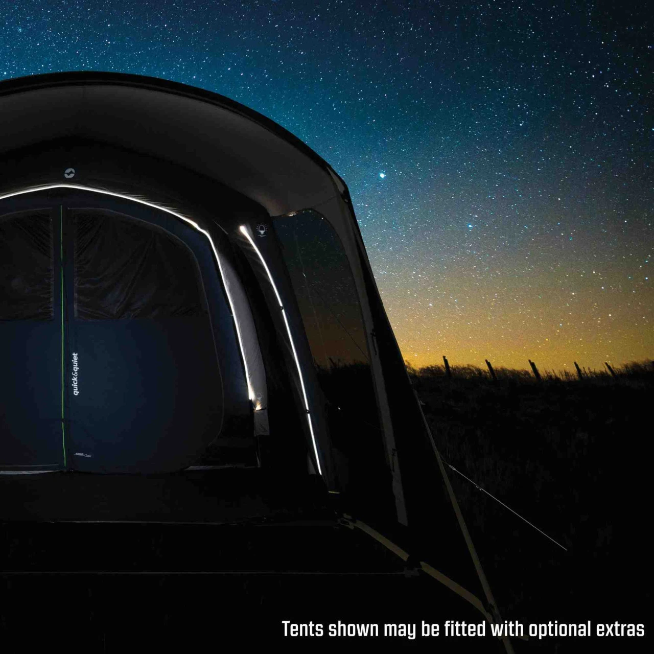 Das patentiert Outwell Nightlight System bietet einen praktischen Komfort für das Camping in der Dämmerung oder Dunkelheit. Bei den Imperial Air Zelten sowie in den Superior Air Touring Fahrzeugvorzelten wurde das HookTrack-System so weiterentwickelt, dass in den Halterungen ein Glasfaserelement liegt, welches von dem wiederaufladbaren Outwell Nightlight System Leuchtelemente-Set beleuchtet wird. Du steckst das Leuchtelement in die Tasche am Ende der HookTrack Leiste und kannst das Licht in 3 Einstellungen per Fernbedienung steuern. Aufgeladen wird das ONS Leuchtmittel-Set über einen USB-C Anschluss. Dank weichen ONS-Lichts kannst du dich in der Nacht im Zelt oder Vorzelt bewegen oder es verlassen, ohne eine Taschenlampe suchen zu müssen und durch den Lichtstrahl andere Personen aufzuwecken. Ein weiterer Vorteil ist, dass du dein Zelt sofort findest, wenn du im Dunkeln zurück zum Campingplatz kommst.