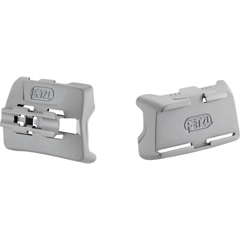 Vordere und hintere Platten zur Befestigung einer Ultra Stirnlampe von PETZL an Speläohelmen.