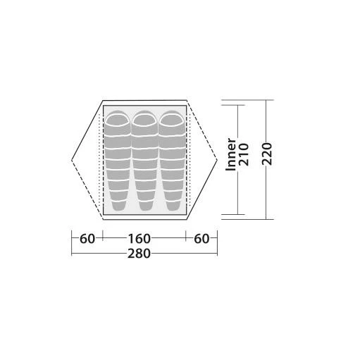 Wenn du gern mit einem oder zwei Begleitern auf Tour bist, ist das Boulder 3 Trekkingzeklt von Robens genau das Richtige. Aber auch für Paare mit einem Kind ist es perfekt geeignet. Bei diesem Modell wird das Innenzelt zuerst aufgebaut. Die klassische Kuppelkonstruktion lässt das Zelt freistehen. In der Mitte des Gestänges ist eine kleine, querlaufende Firststange angebracht. Diese Stange sorgt dafür, dass die Wände des Innenzeltes steiler aufgestellt sind und somit mehr Platz im Zelt schaffen. Bei einer Höhe von 1 m kannst du bequem im Zelt sitzen. Das Boulder 3 bietet 3 Erwachsenen mit Standardmatten (ca. 50 cm Breite) Platz. Bequem liegst du hier zu zweit, denn dann ist Platz für Matten mit einer Breite von bis zu 70 cm.