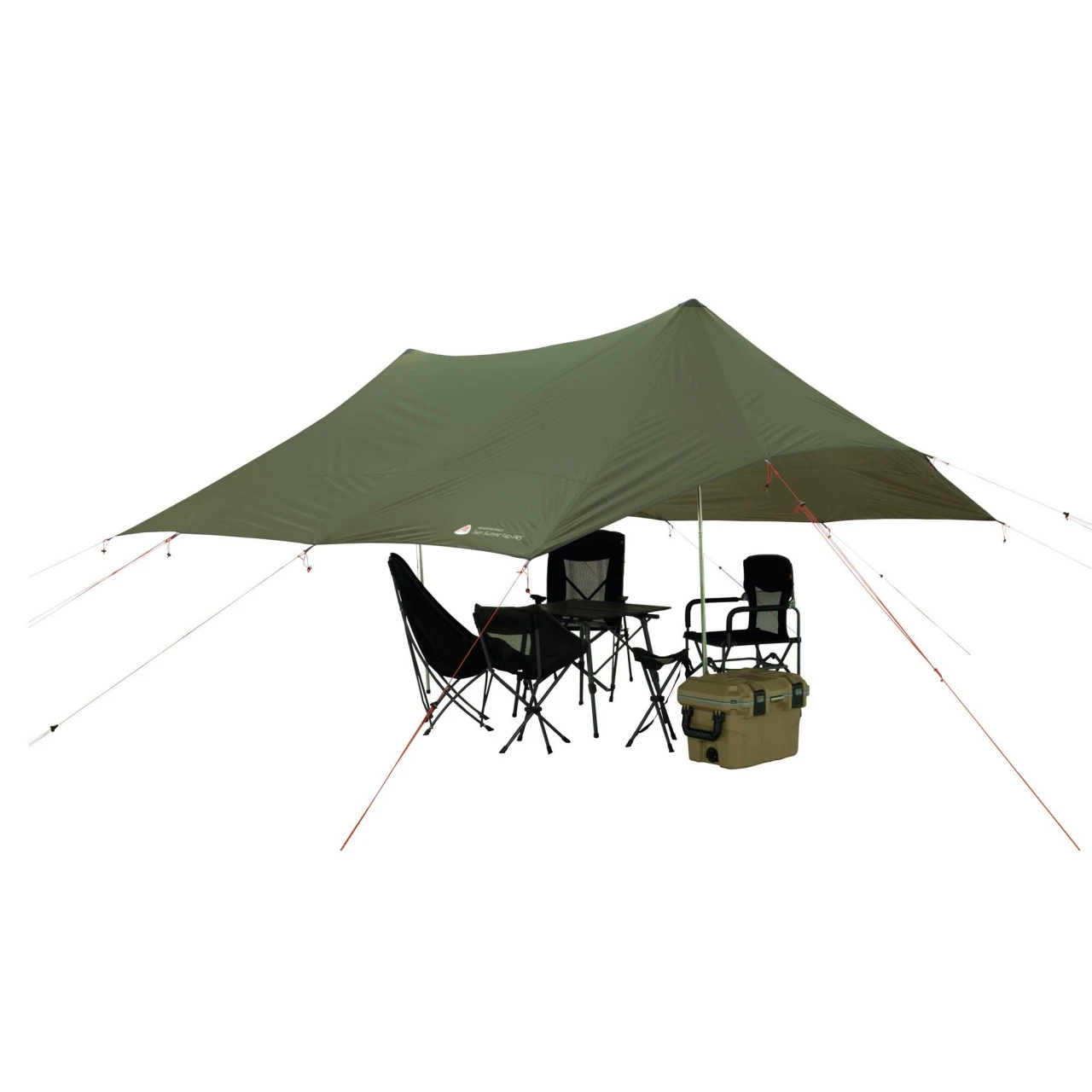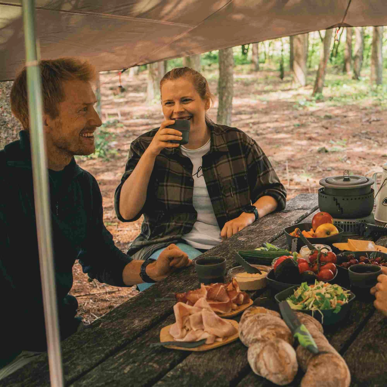 Der Robens Twin Summit Shelter PRS ist ein großer Unterstand, unter dem ihr auf dem Campingplatz entspannt sitzen könnt. Das HydroTex HD RS Gewebe ist mit seiner 5.000 mm Wassersäule absolut regendicht. Die RipStop Webung sorgt dafür, dass das Shelter nicht reißt.