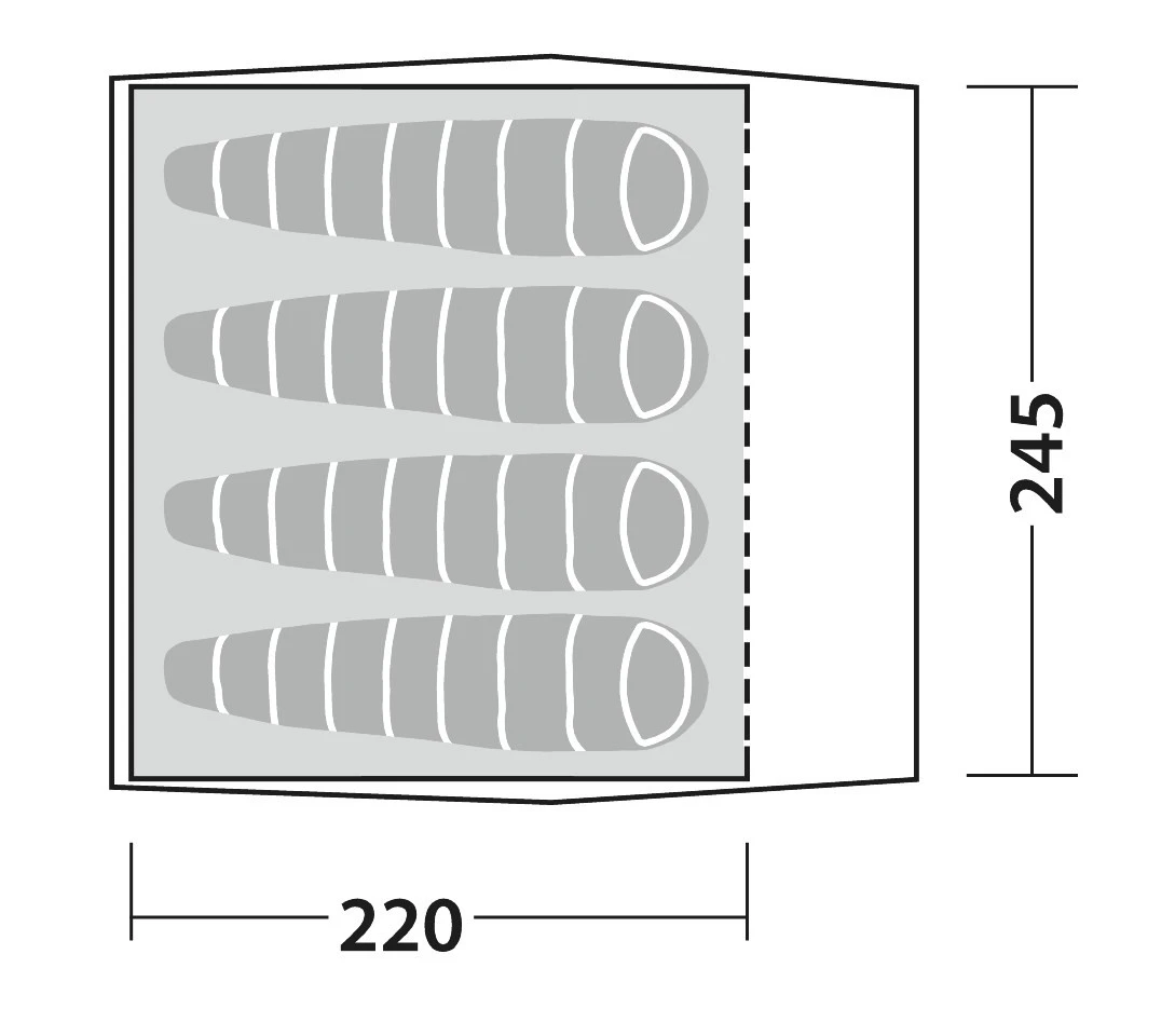 Inspiriert von den simplen Holzhütten, die bei der Erkundung der skandinavischen Landschaft genutzt werden, bietet der Robens Yukon Shelter ein Basislager, das mitgenommen werden kann. Der großzügige Unterschlupf bietet Platz für vier Personen und verfügt über einen angenähten Zeltboden sowie eine Tür und Lüftungsöffnungen mit Netzstoff für ein insektenfreies Leben. Der aufrollbare Vordereingang ermöglicht eine Panorama-Aussicht, erleichtert den Zugang zum Zelt und verbessert die Belüftung. Er kann mit optional erhältlichen Aufstellstangen auch zu einem Vordach umgebaut werden. Die Stangenkanäle für das 25 mm Stahlgestänge befinden sich an der Außenseite, was den Aufbau erleichtert.