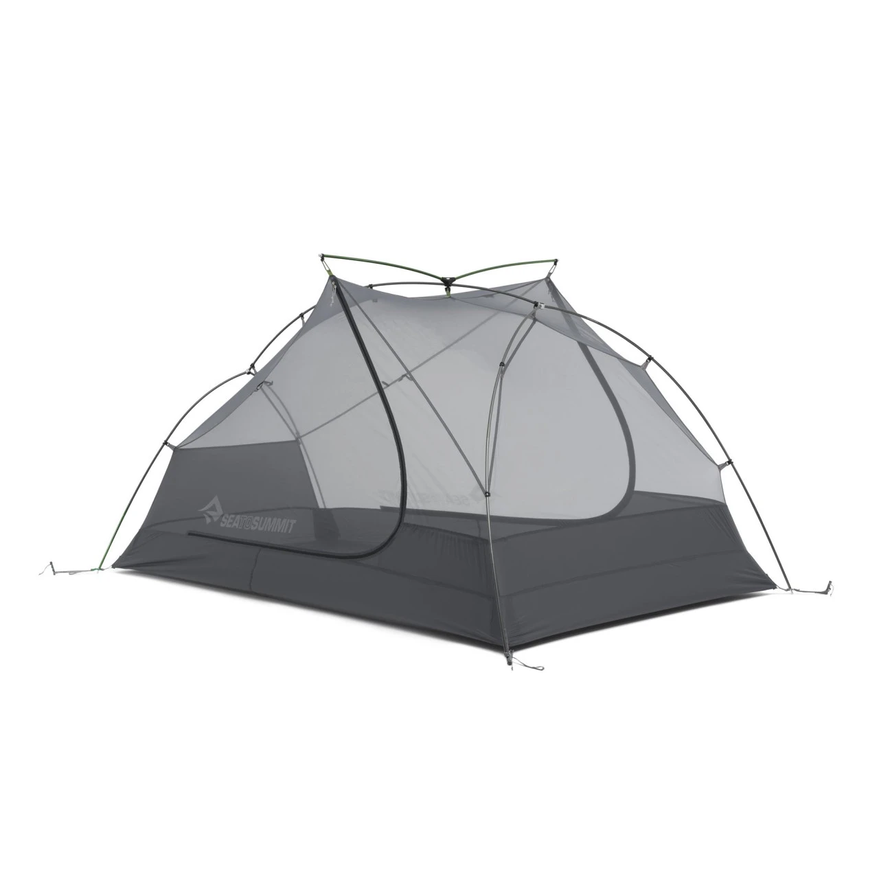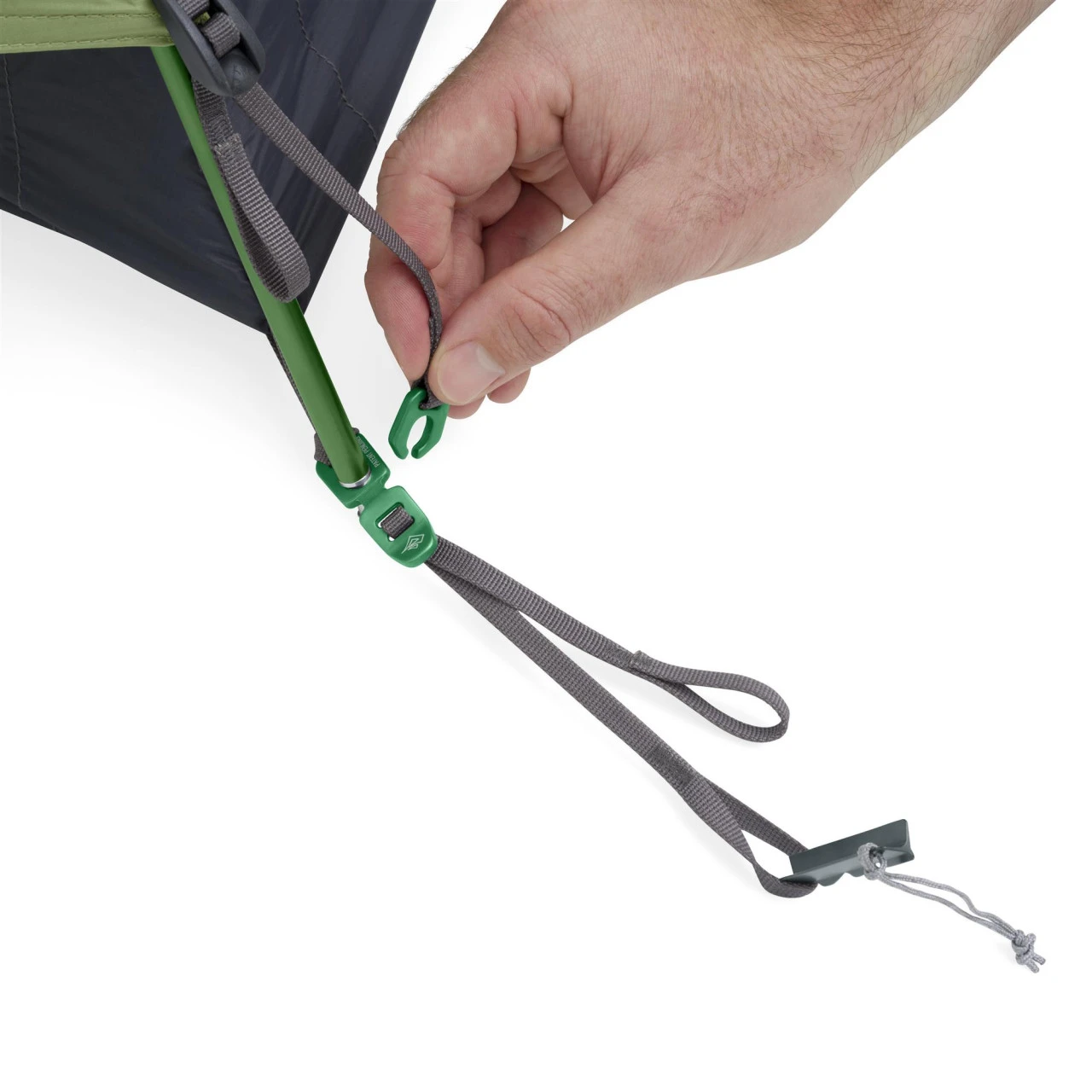Das DAC Featherlite Aluminiumgestänge ist komplett verbunden, so dass das Zusammenstecken intuitiv fast von allein geht. Die farblich markierten Stangenenden werden in die dafür vorgesehenen Enden am Zelt gesteckt. Sea to Summit hat die Quick-Connect Pole Feets noch weiter verfeinert. Gefräste Aluminium Clips machen das Befestigen des Außenzeltes schnell und einhändig möglich. Die Aluminium Clips sind zudem noch deutlich haltbarer als herkömmliche Kunststoffschnallen.