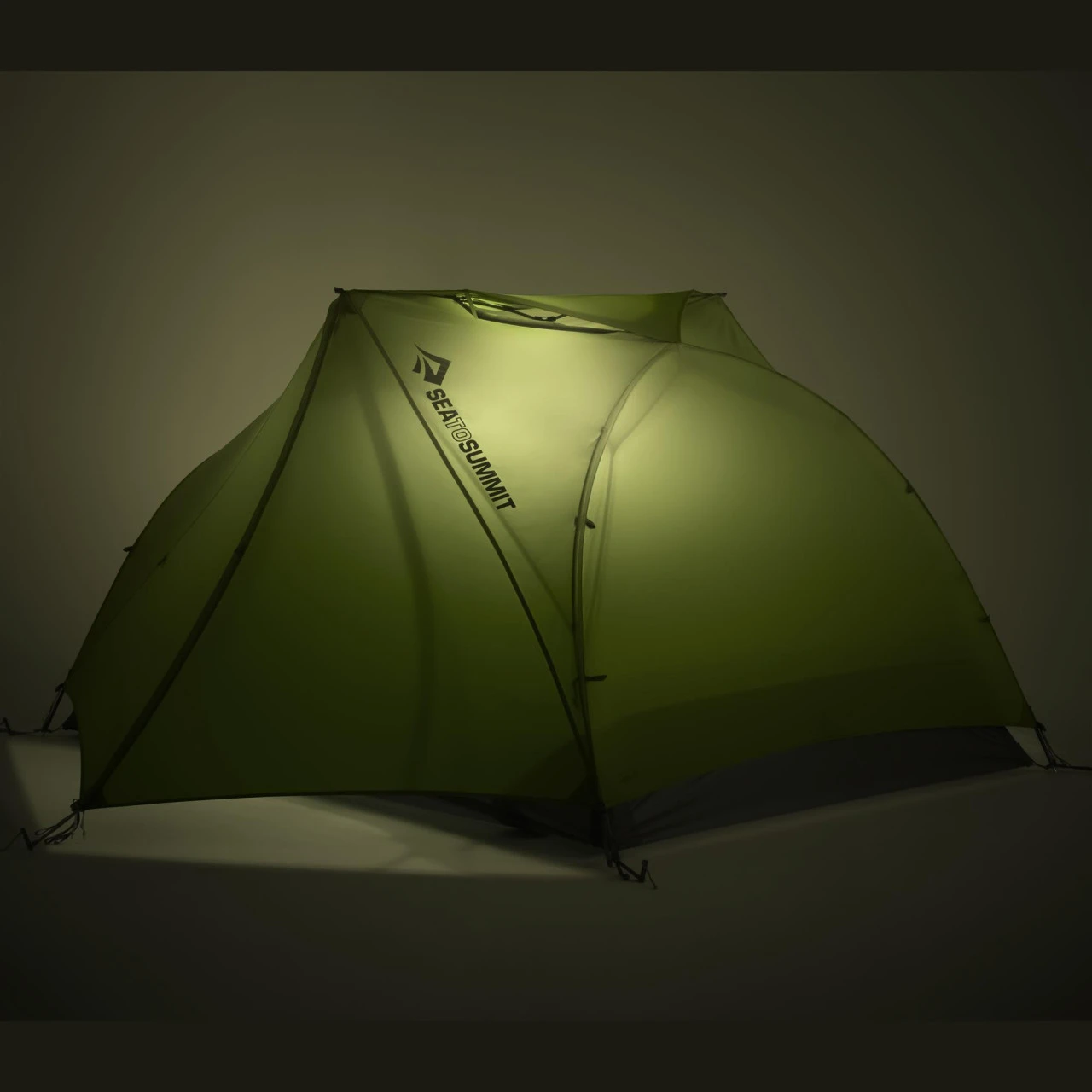 Am höchsten Punkt des Telos TR2 Bikepack Zeltes befindet sich die Apex Belüftung. Durch diese Belüftung kann warme, feuchte Luft aus dem Zelt entweichen. Wenn es nötig ist, kann die Apex Vent Belüftung von innen mit einem Reißverschluss geschlossen werden. Verstellbare Öffnungen an den Türen (Baseline Vents) ermöglichen es, den Luftstrom sowie die Kondensation bei Nässe zu steuern, ohne das Regen ins Zelt gelangt. Durch die Kombination von Apex Vents und Baseline Vents entsteht ein Kamineffekt, bei dem kühle Luft von unten ins Zelt gelangen kann und warme Luft am höchsten Punkt des Zeltes entweicht.
