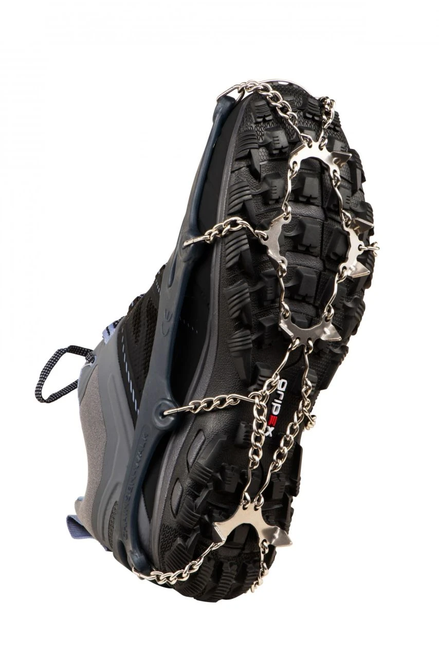 1 cm lange Zacken geben besten Grip au fverschneiten Wgen oder matschigem Untergrund. Das Gewicht ist trotzdem sehr gering. Der robuste Elastomer-Gummi sorgt für sicheren Sitz und verfügt über die ideale Passform für feste Schuhe zum Winter- und Bergwandern.