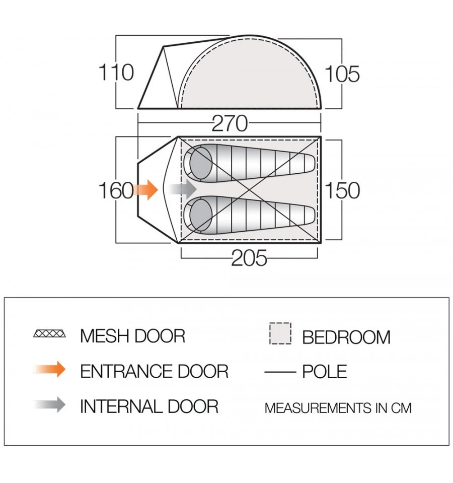 Der Aufbau des Vango Alpha 250 CLR geht leicht von der Hand. Das Innenzelt wird zuerst aufgestellt und kann im Sommer auch ohne Außenzelt verwendet werden. Die Schlafkabine ist abgedunkelt und reduziert den Lichteinfall am frühen Morgen und verhindert, sodass du direkt von den ersten Sonnenstrahlen wach wirst. Das Innenzelt besteht aus atmungsaktivem Polyester und sorgt dafür, dass das Kondenswasser entweichen kann. Optional sind Aufstellstangen für den Eingang erhältlich, die die Verwendung als Sonnendach ermöglichen.