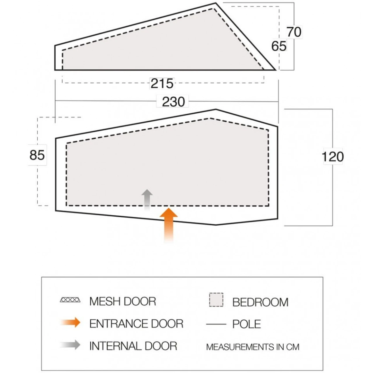 | Aufbau-/ Wohnfläche | 230 x 120 cm / 215 x 85 cm |