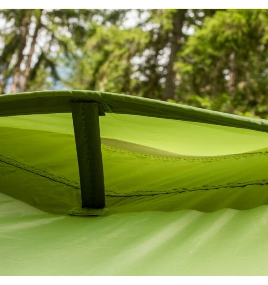 Mit Hilfe der farbcodierten Stangen baust du zuerst das Innenzelt aus atmungsaktivem Polyester auf. Bei schönem Wetter kannst du es auch ohne Außenzelt nutzen. In der Mitte des Zeltes befinden sich praktische Aufhängungen für Lampen und die großen kristallklaren Fenster sorgen dafür, dass genug Licht ins Zelt fällt. In der Nightfall-Schlafkabine kannst du selbst über deinen Schlafrhythmus bestimmen und wirst nicht durch die ersten Sonnenstrahlen geweckt.