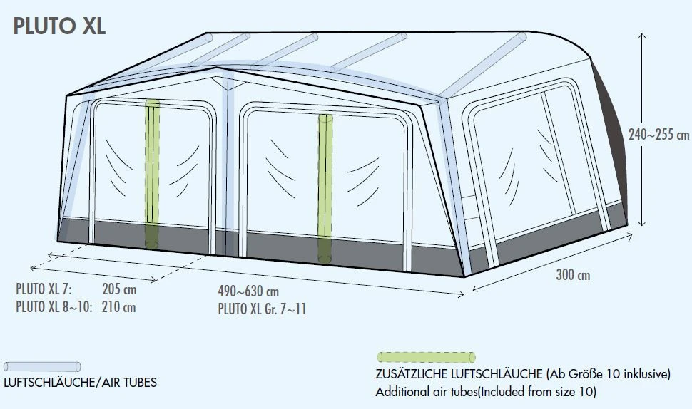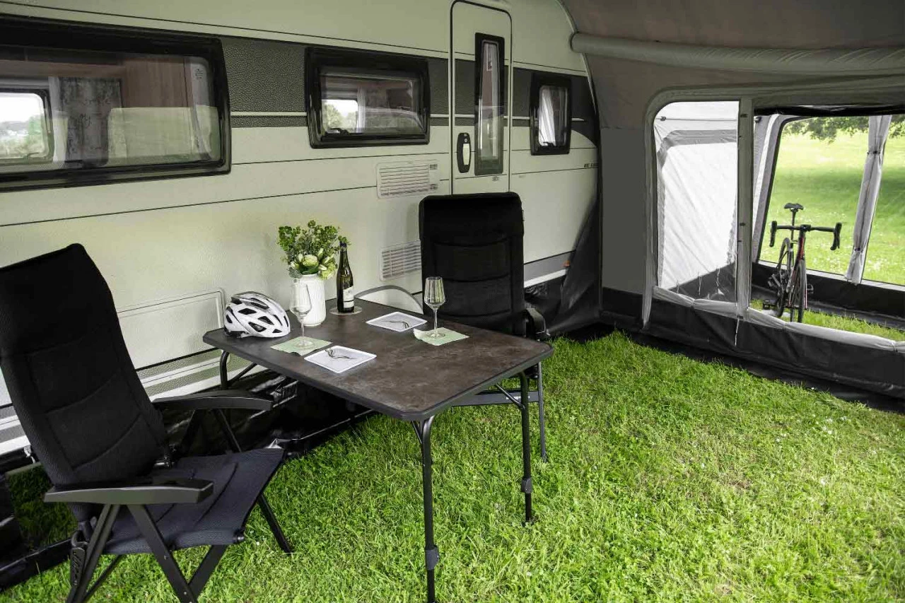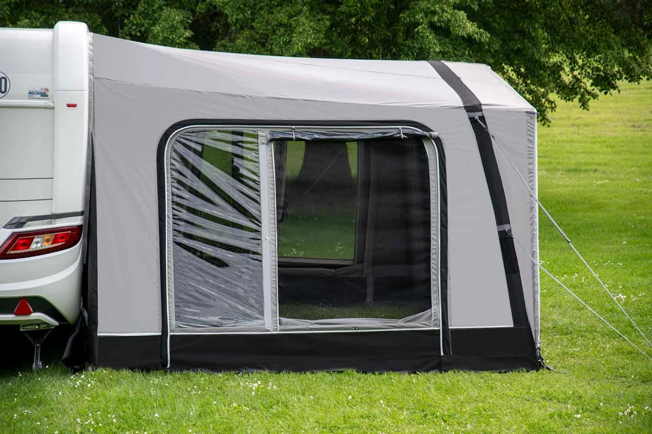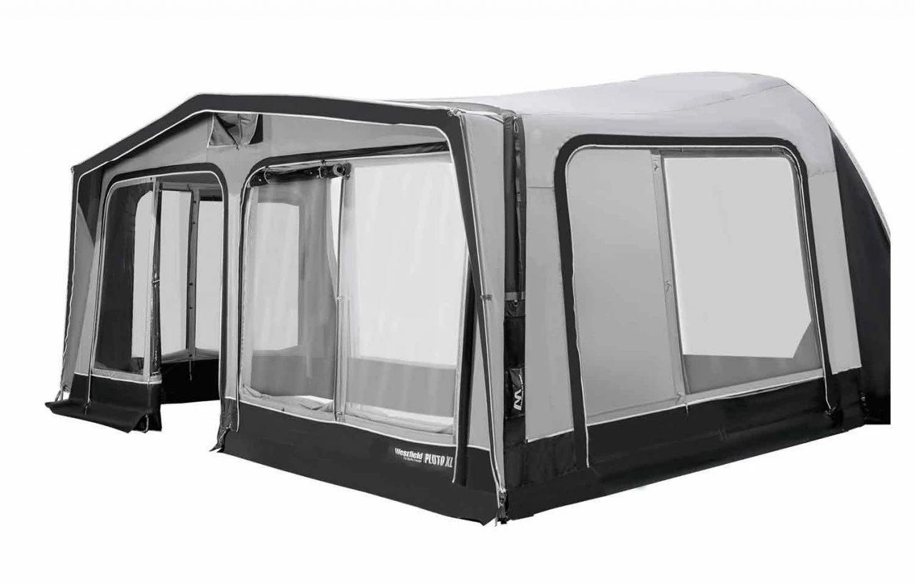 Du bist auf der Suche nach Luxus, Komfort und Freiheit pur! Das volleingezogene Westfield Pluto XL Luftvorzelt bietet dir mit einer Vorzelttiefe von 300 cm ein überragendes Raumgefühl. Mit dem HydroTech Cotton Touch Material bist du bei wechselnden Wetter- und Temperaturbedingungen jederzeit formstabil. Das hochwertige Material des Westfield Pluto XL Wohnwagenvorzelt ist ein spinndüsengefärbtes Material, das dir durch die zusätzliche PU-Beschichtung außen und innen eine hohe Lebensdauer deines Zeltes garantiert. Denn neben den wasser- und schmutzabweisenden Oberflächen, bietet es einen hohen UV-Schutz. Alle Vorder- und Seitenwände sind mit Moskitonetzen ausgestattet und können je nach Bedarf und Wetterlage komplett herausgenommen oder auch zur Hälfte abgeklappt werden. Für ein gutes Zeltklima sorgt die dauerhafte Hochentlüftung, sodass in deinem Zelt ein angenehmes Klima herrscht. Durch den Volleinzug wird es ganz einfach in die Kederschiene eingezogen. Somit ist dir eine perfekte Abdichtung an den Seiten deines Caravans garantiert. Ein optionales Vordach an der Front des Zeltes, das du mittels Keder anbringst, verschafft dir zusätzlich geschützten Raum – ob bei Sonne oder Regen.